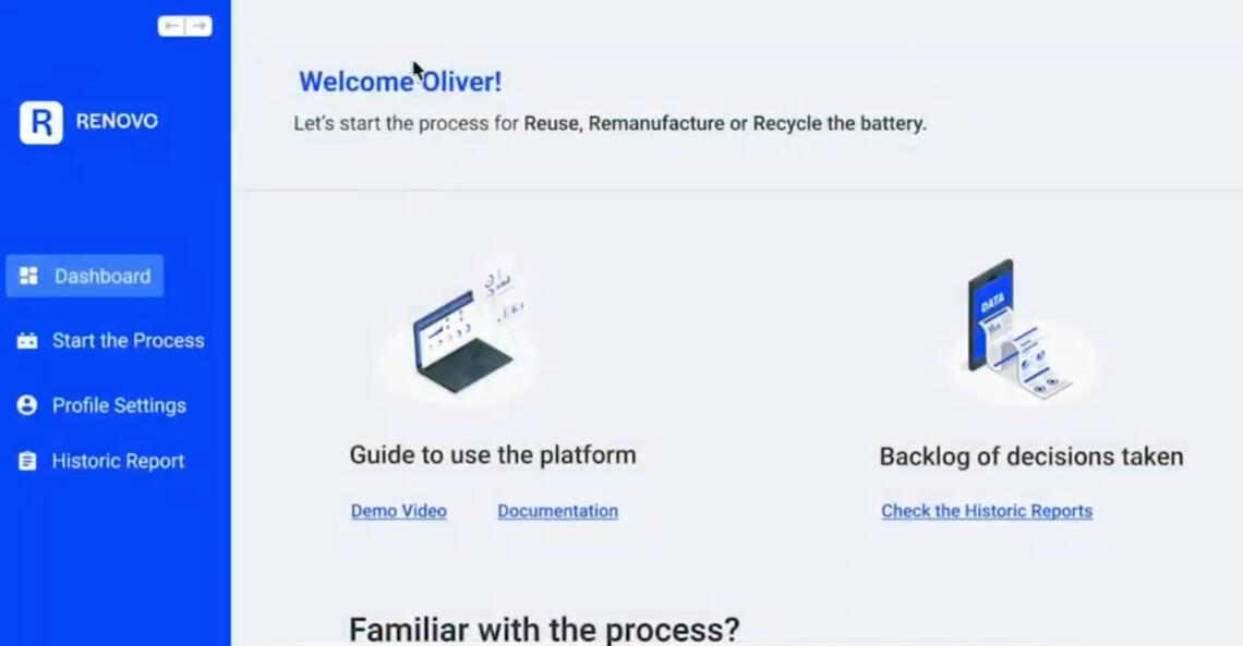 RENOVO: Joint project from Digital Product School by UnternehmerTUM with SAP and CatenaX, for the development of a platform to digitalize and enable battery recycling.